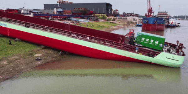 ºº½Á÷ÓòÊ×ËÒ´¿µç¶¯¼¯×°Ïä´¬ÏÂË®